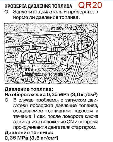 В книге указано, что на QR20 должно быть давление 3,6 бар на заведенном - у меня ровно столько и давит.