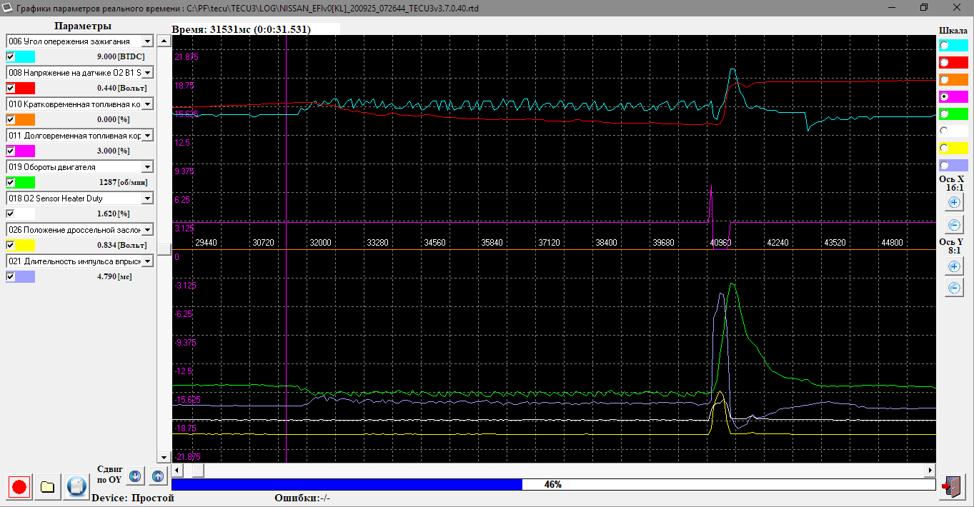 Вот сегодня утром было +7С, подключил ноут, запустил двигатель и повезло, это случилось. Не часто это случается... а уж зафиксировать инструментально проявления - вообще крайне сложно.