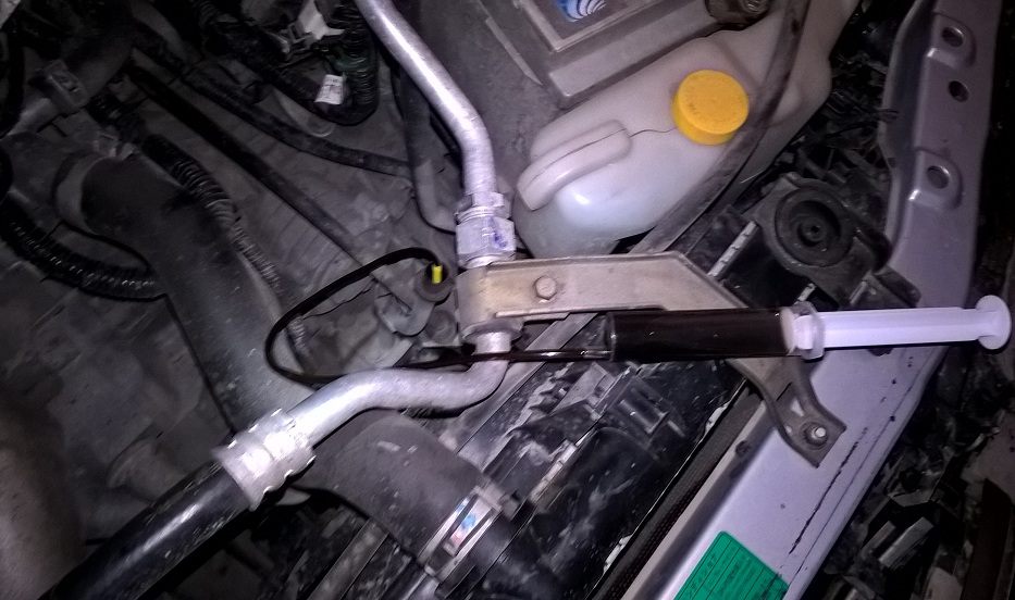 3. Процесс пошел. Выкачивал на заглушенном, проверка по книжке на заведенном двигателе. Проверку уровня делал на 200 мл, 500, 1 литре, 1.5: