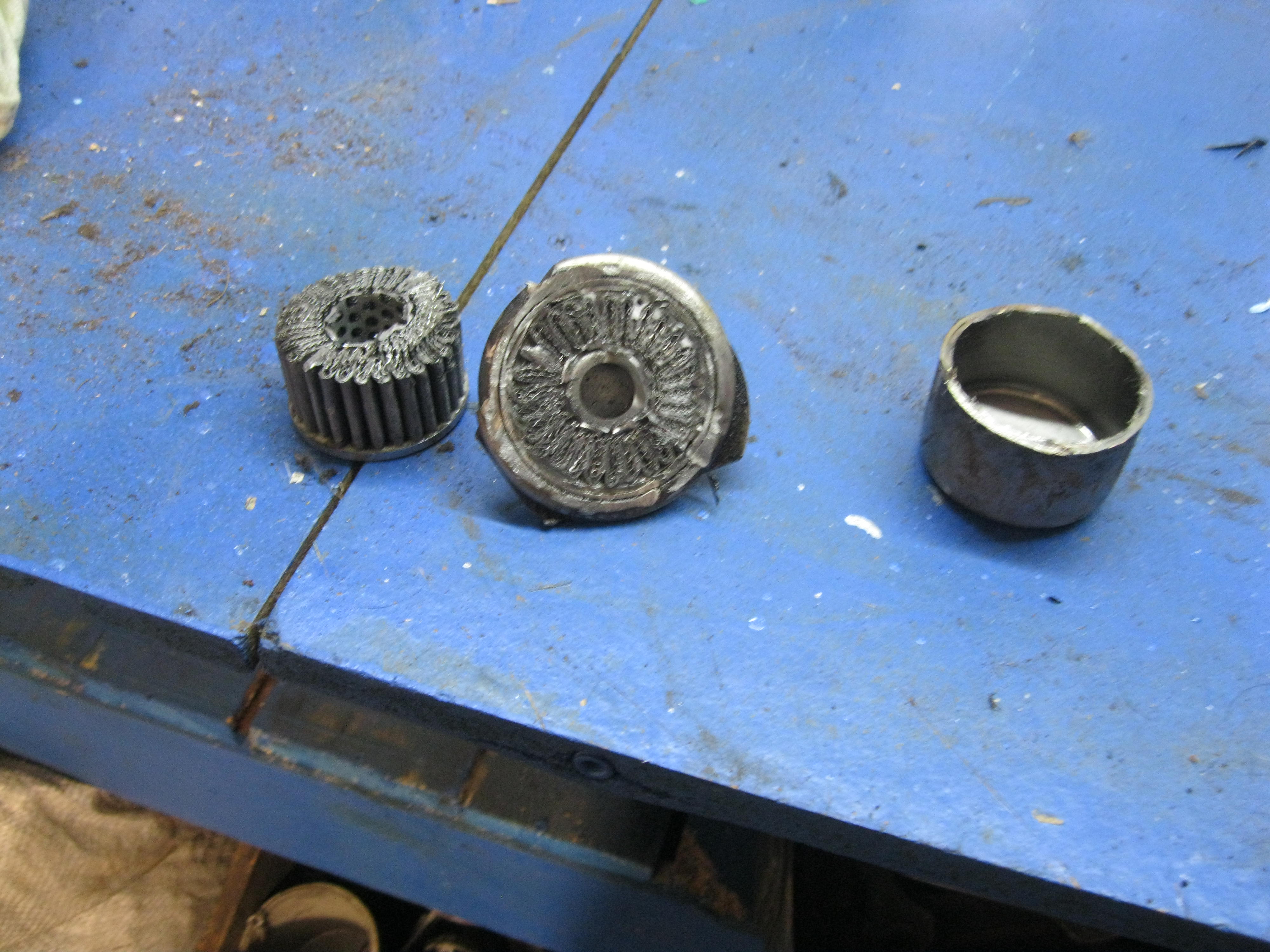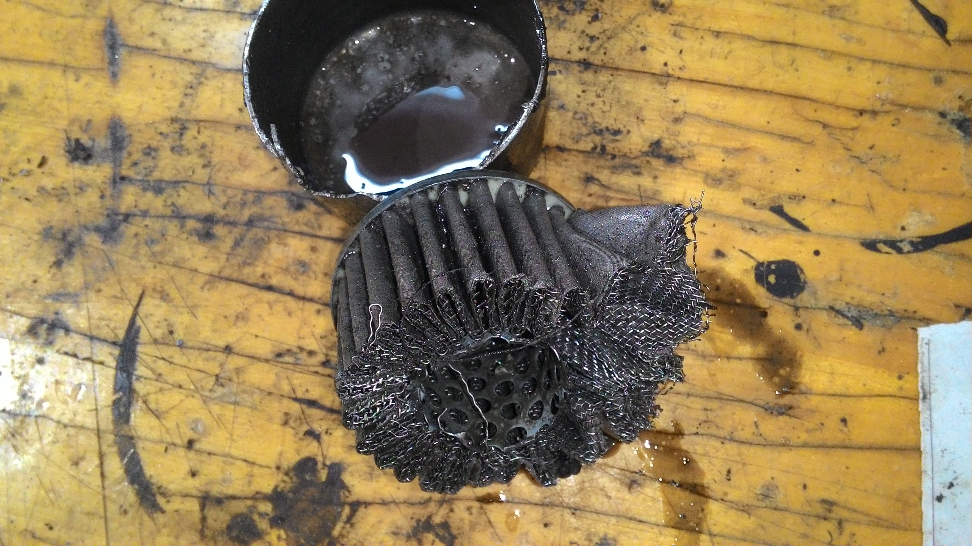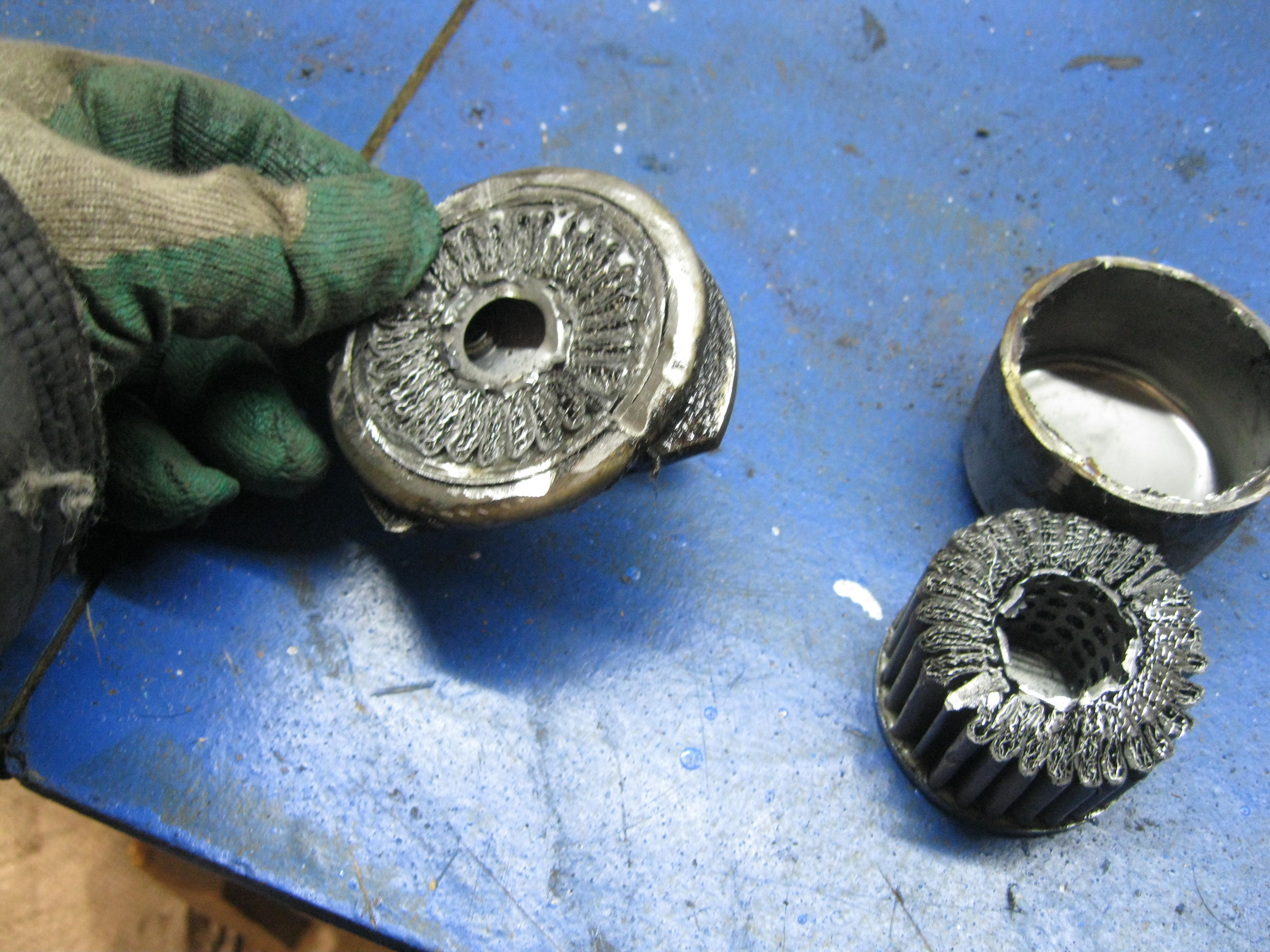 Внешний фильтр, также как и внутренний состоит из металлической сетки, но в отличие от внутреннего сетка там разная - смотреть фото ниже.