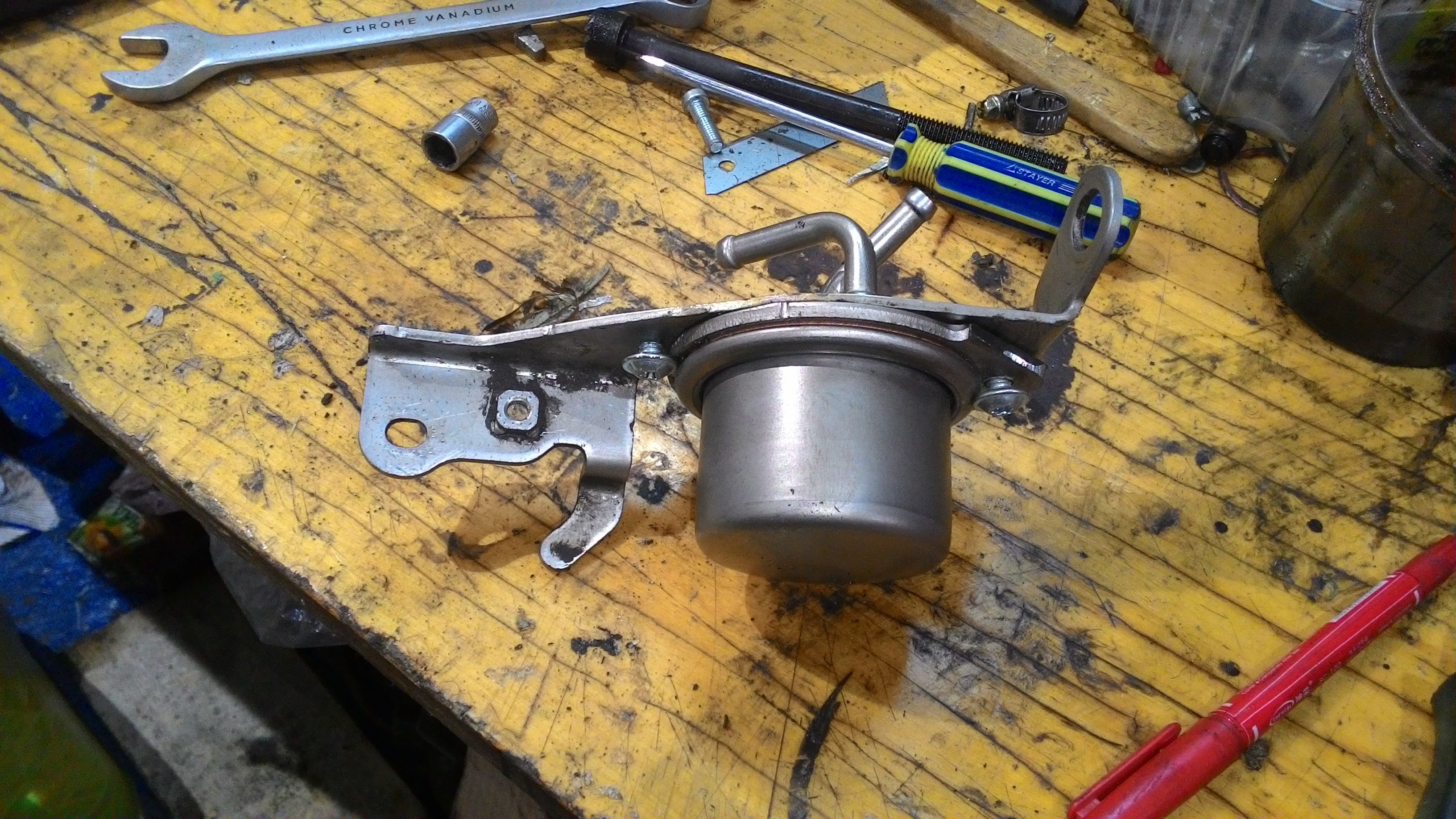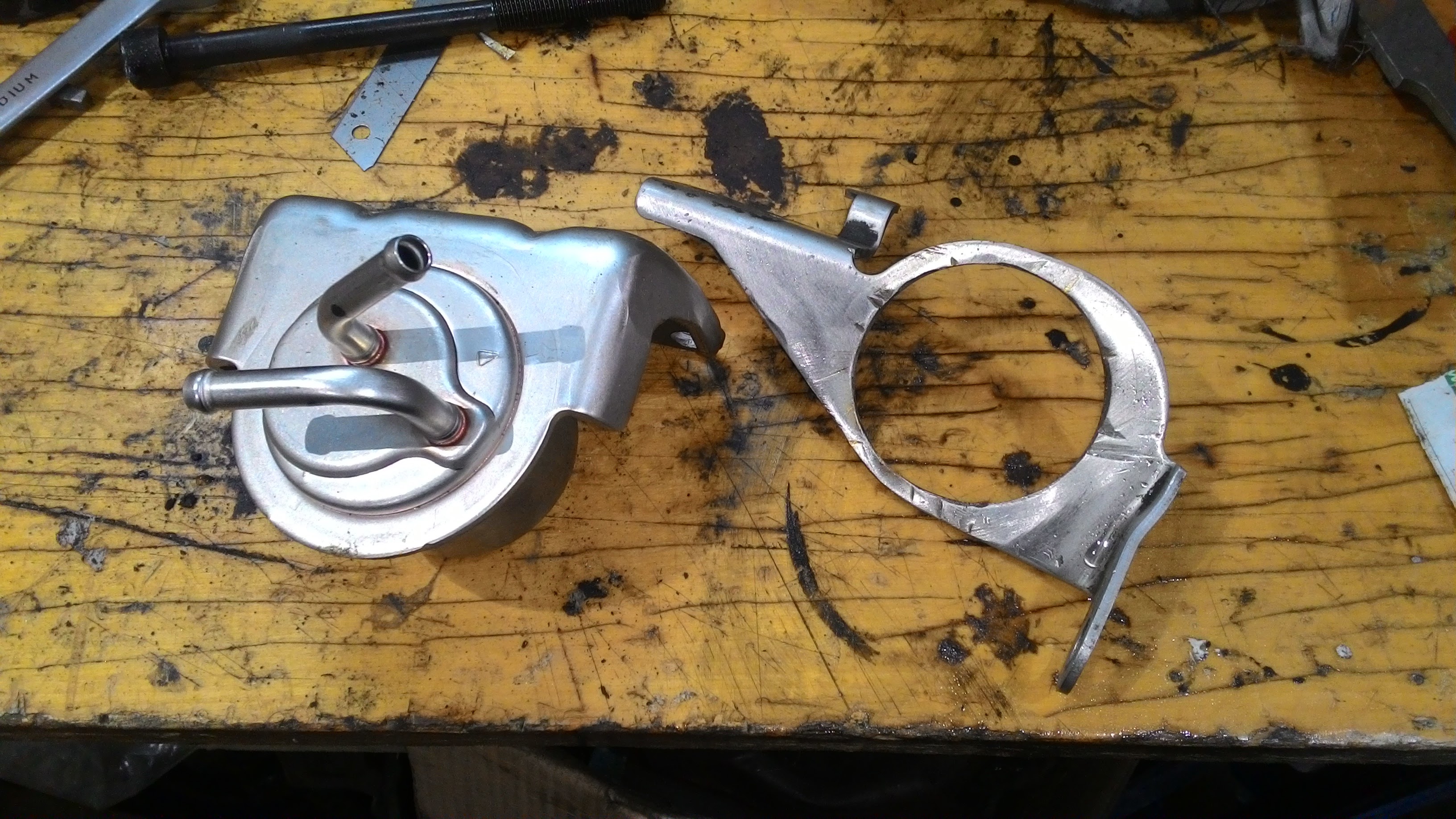 Номер фильтра 317261XE0A NISSANУ этого фильтра я обрезал крепление, у нашего родного фильтра я вырезал сам фильтр, и прикрутил новый фильтр к креплению родного фильтра. Сам родной фильтр приварен к креплению, так что вырезать только болгаркой. Теперь я могу этот фильтр менять хоть с каждой заменой масла всего-лишь срезав крепление от муроновского фильтра. На фото немного не правильно расположены патрубки, правый болт я переделал и просто сделал зацепление за юбку фильтра с двух сторон, но в целом думаю смысл понятен.