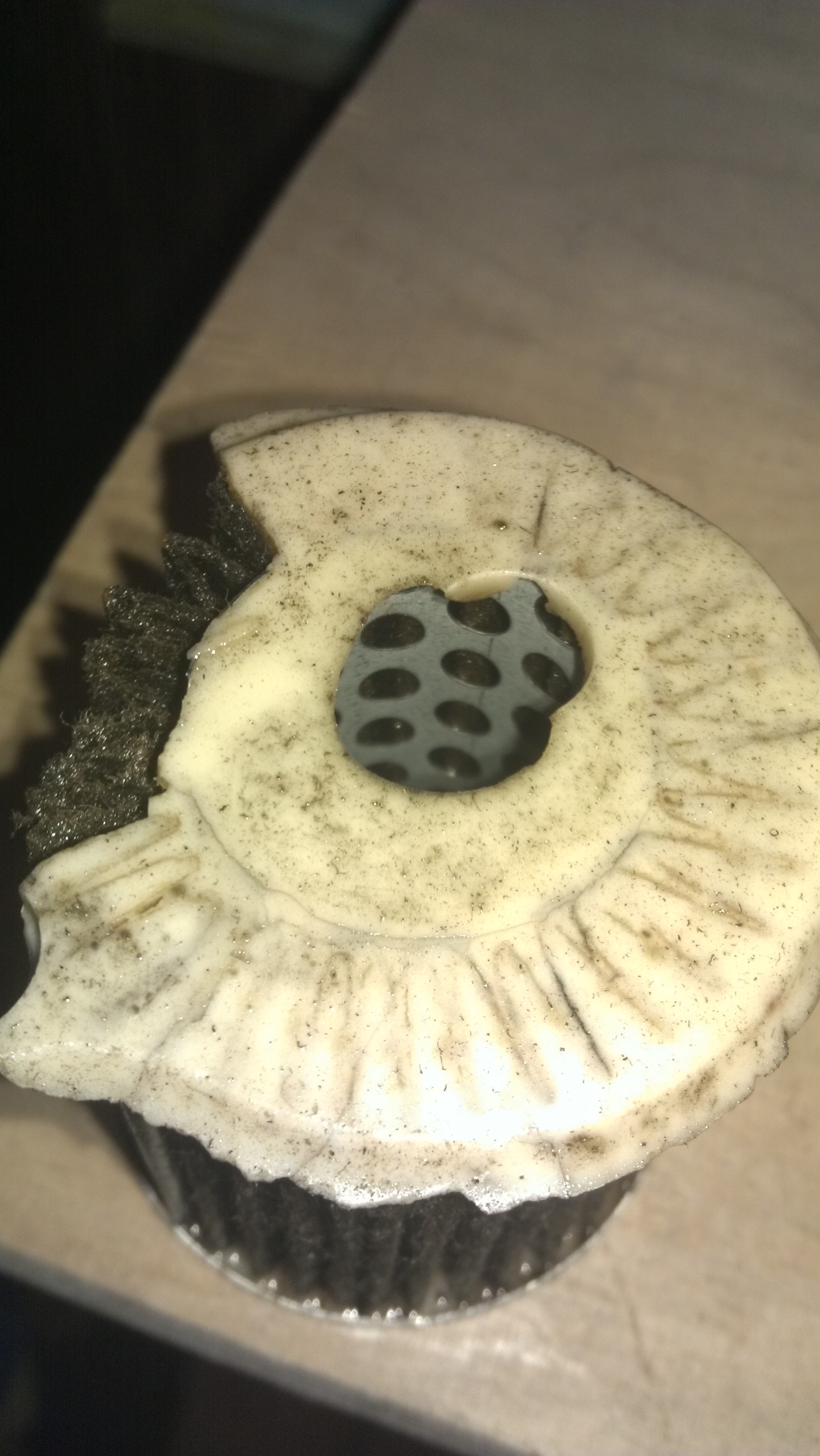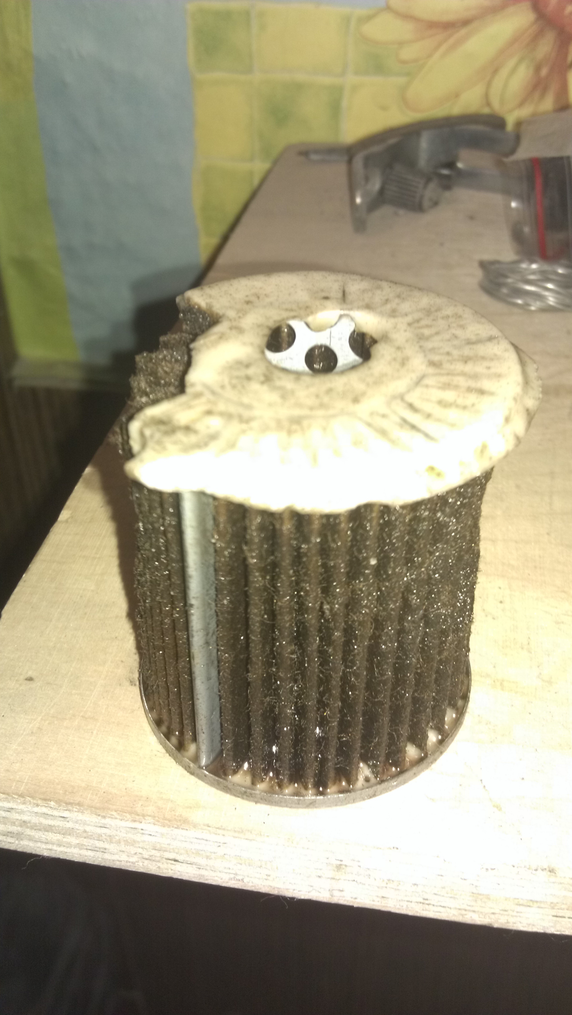 Работает фильтр в отличие от большенства фильтров - наоборот, т.е. подача в фильтр внутри, там первым слоем стоит крупная сетка, снаружи мелкая - для улавливания мелких частичек. Так что промыть этот фильтр в принципе можно, размокать там нечему, но я поставил фильтр от мурано за 400р, он один в один как наш, по размерам все точь в точь, только крепление другое и трубки загнутые.