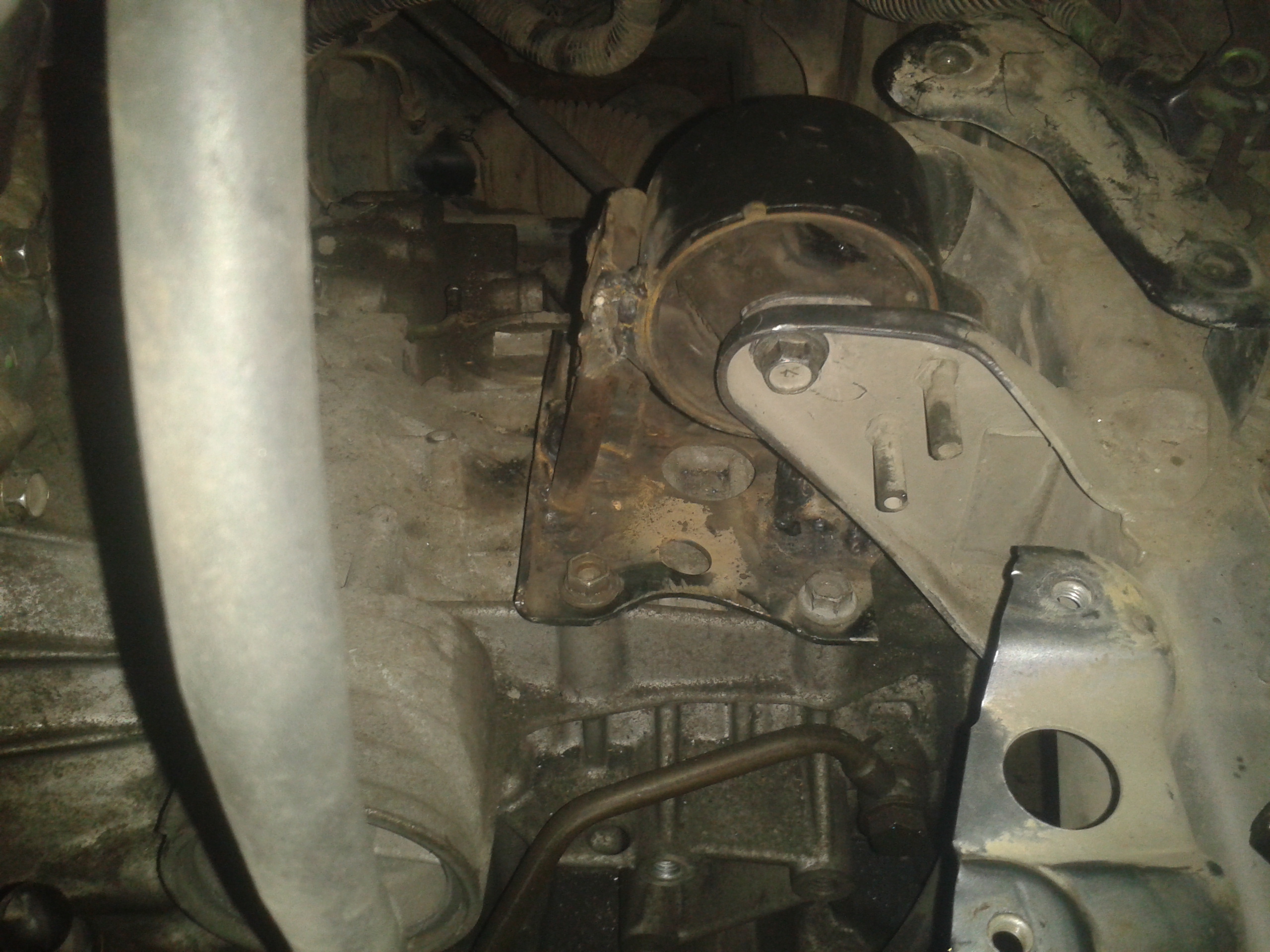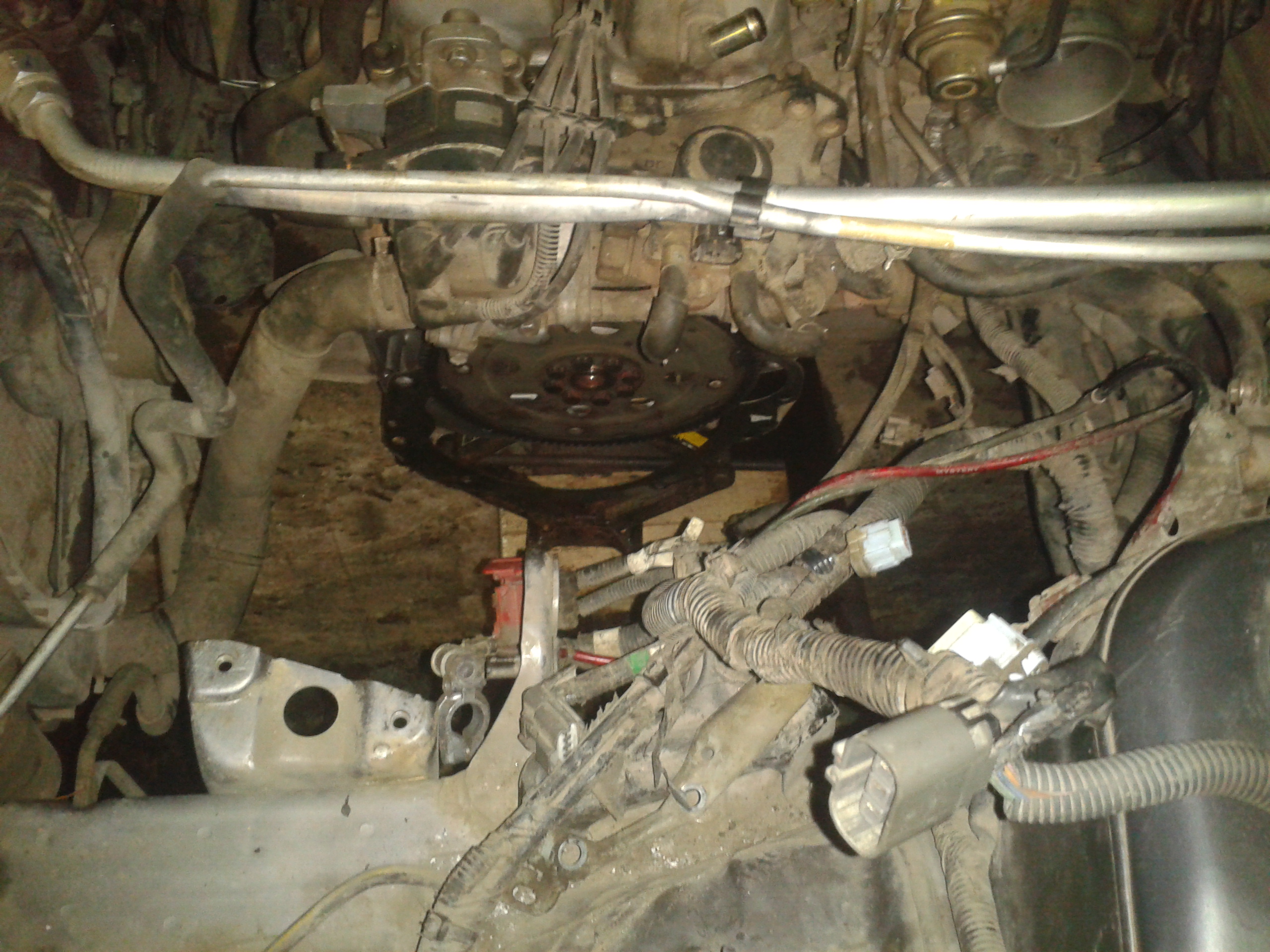 5. После установке АКПП, с помощью домкрата выравниваем двигатель.