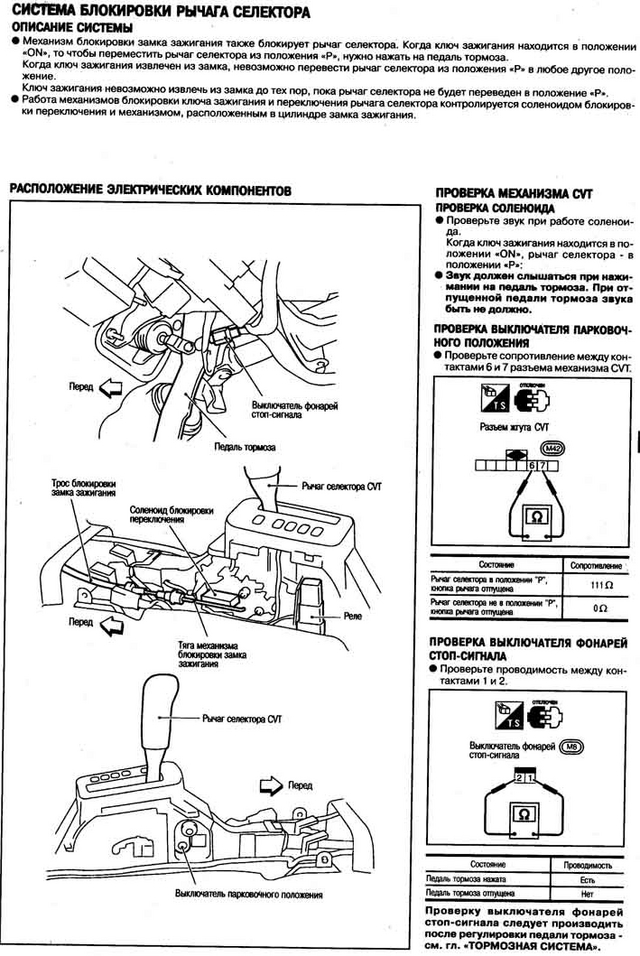 Общие рекомендации: 1. при замене регулятора меняйте масляный фильтр (номер 31728 )– жизнь коробке это продлит. 2. при снятии поддона и замене step motor ( номер 31947 – стоимость около 3200 руб ) потребуется 5 литров масла . Заливать можно только оригинальное NS1 . Залив другого приводит к выходу CVT из строя буквально за пару кругов. Примеры видел. Предупреждение о повреждении наклеено на пробке щупа уровня масла . 1. обмотки step motor – каждая фаза ( например – вывод 2 – корпус ) около 15 Ом в старом регуляторе. В более новых – сопротивление повышено до 20 Ом. Выводы 2-3 и 4-5 по 30 Ом или 40 . 2. датчик температуры ( выводы 6-7 ) аналогичен в обычных АКПП , сопротивление около 2,5 кОм , напряжение на холодную при подключенном разъеме – 1,5 вольт, горячий – около 0,5 V 3. вывод 8 – HPSV – клапан регулировки линейного давления , аналогичен обычной АКПП , при включении зажигания и плавном нажатии на педаль газа в районе CVT должен раздастся треск его работы , что говорит о функционировании самого клапана и понижающего резистора ( dropping resistor - сопротивление 12 Ом ), Сопротивление клапана около 3 Ом. 4. Вывод 9 – TCLS – клапан блокировки ГТ - 15 Ом , блокирует ГТ для уменьшения Потерь и увеличения КПД 5. вывод 1 – датчик давления в CVT , скорее всего электронный, питание VCC - 5 V на выходе режим хх ,прогрет, - около 1 V, режим stall test – около 4 V Известные мне коды неисправностей P1791 – датчик давления масла P1777 – электрическая неисправность step motor _ обрыв обмотки P1778 – механическая неисправность step motor _ обмотки целые, подклинивает или нет регулировки P0710 – датчик температуры P0745 – соленоид регулировки давления HPS P0740 – соленоид блокировки ГТ