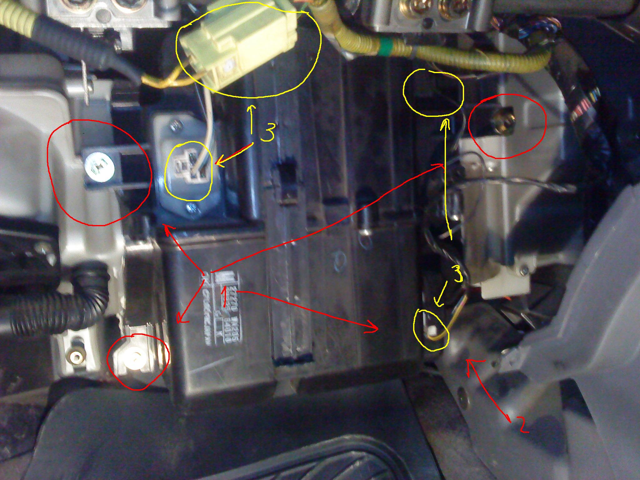 после чего аккуратно снимаем блок кондёра снимаеться легко достаточно,прежде чем его снимать выньте фильтра салона мне мешали.