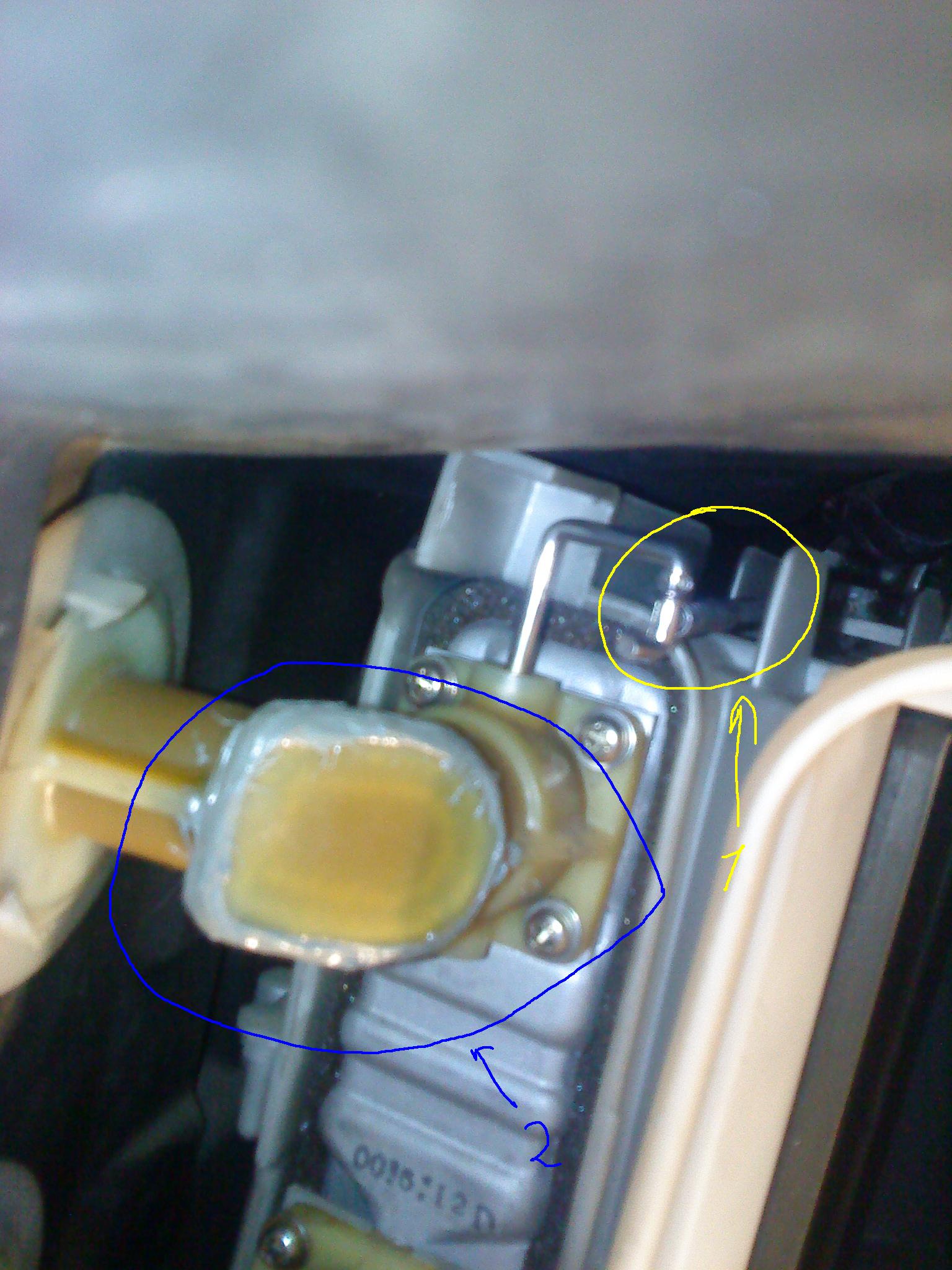 для их снятия откручиваем восемь болтиков и снимаем их,перед установкой рекомендую помазать герметиком хорошим только а не уксусным,тонким слоем,у меня тёк кран печки где припаяна вот эта вот крыжечка непойми зачем она там на рисунке ниже под цифрой 2 (то место где замазано поксиполом) и очень осложняет процесс снятия и установки тяга под цифрой 1 , тяжко её ставить особенно :)