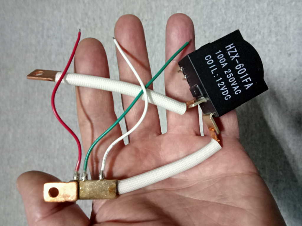Укомплектован силовыми гибкими выводами и шунтом, который тоже можно применить в автоматике. Между крайними выводами шунта при токе 10,8А падает ровно 2 мВ, т.е. сопротивление шунта 185 мкОм. Полное падение напряжения между силовыми клеммами при токе 10,8А равно 11,8 мВ, т.е. общее сопротивление в этой цепи 1,1 мОм.