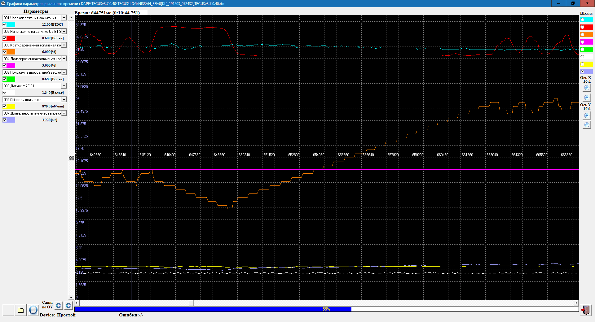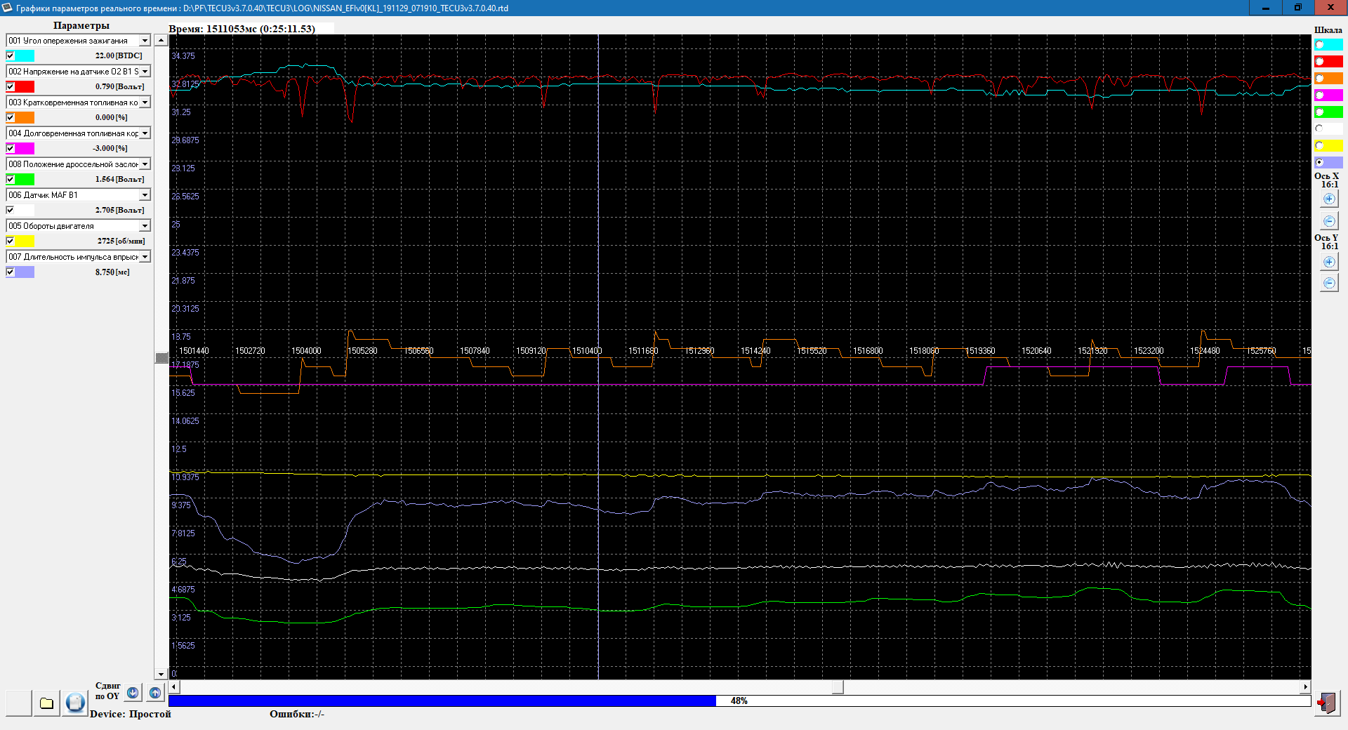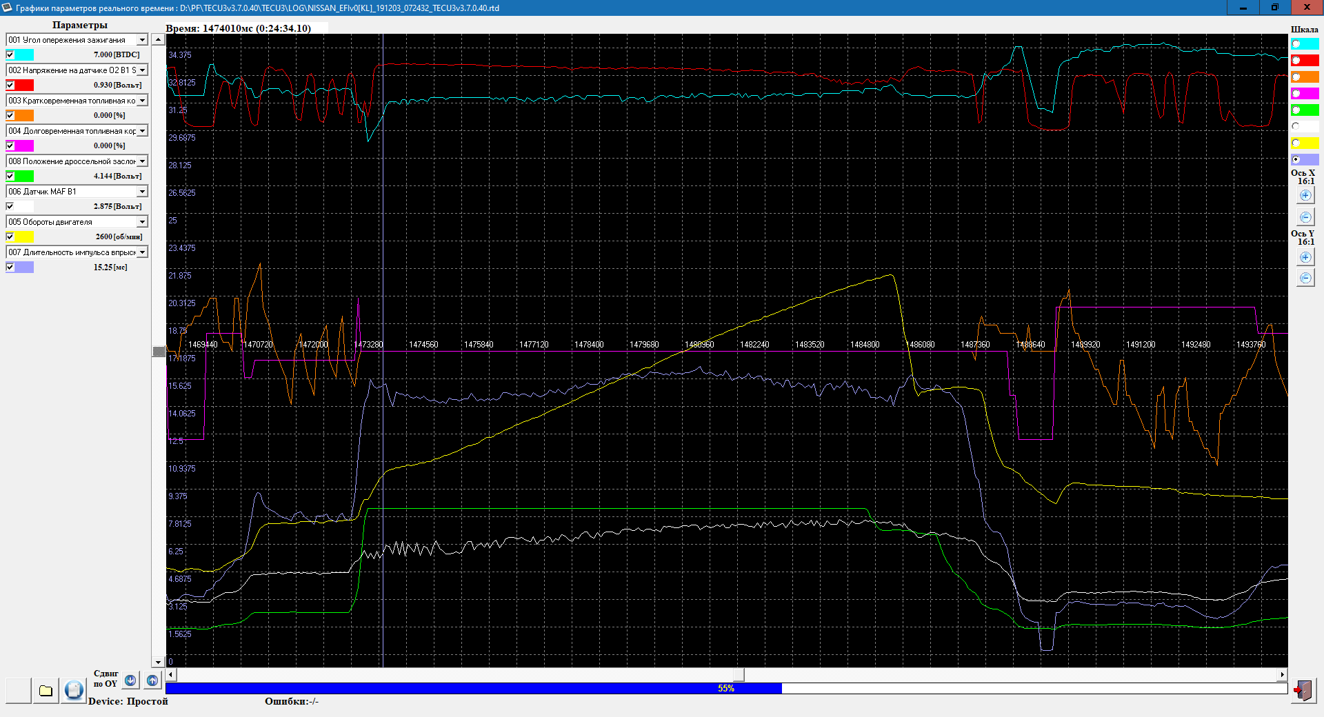Через TECU наблюдай за работой двигателя. Следи, чтобы коррекции не убегали слишком. У себя стараюсь не допускать убегания длинных коррекций более 5-7%.