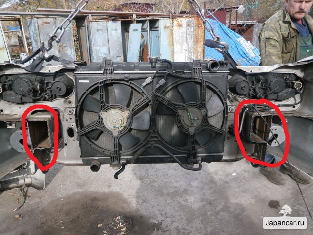 На фото №1 видно обведенные части сильно замяты. Поэтому мне и нужен ноускат, но без фар и если можно без радиаторов. Одной рамкой не обойтись.