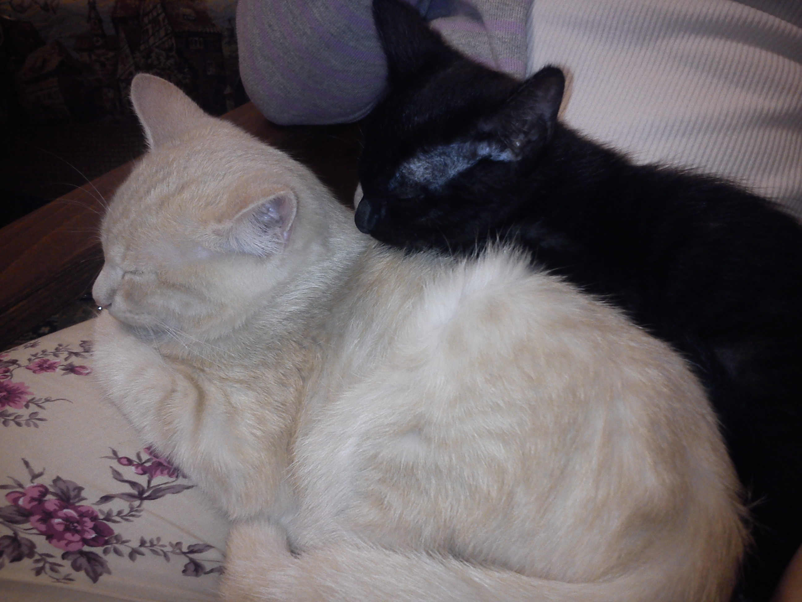 Нагуляла наша большая всемирная чемпионка тайская (кто не знает - тайские кошки выглядят как сиамские кошки во времена СССР) кошка Симона с просто черным котом чумазых чертенят. Получились темно-коричневые с темными пятнышками зелено-желтоглазые девочки. Сейчас им 2 месяца. Характер общительный тайский - кошки-собаки, кошки-друзья-компаньоны, кушают уже сами, ходят на горшок. Игривые, любопытные. По определению породы ловят все что шевелится - мыши, крысы, птички, змеи, выкапывают кротов и едет все, что для них съедобно из вышеперечисленного.