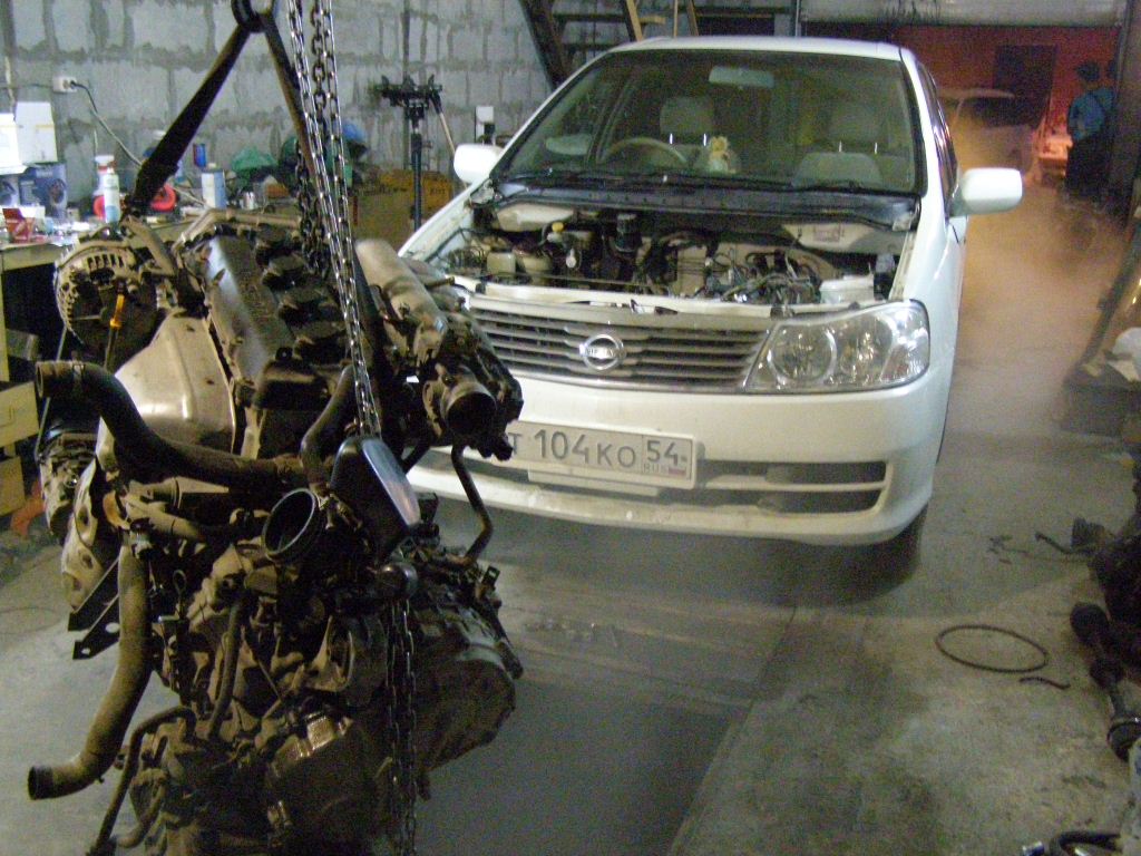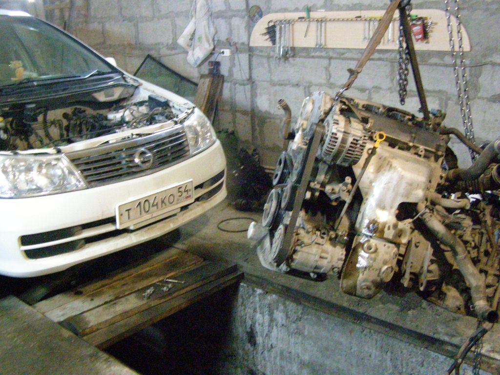 Раздумывал не долго двигатель купил в субботу вечером тут же рядом есть сервис в воскресенье двигатель перекинули. Понравилось отношение ребят к работе пока отсоединяли от двигателя провода, патрубки предварительно слив жижы. Выяснилось что нет съемника для снятия бензопровода от рамки форсунок. Не долго думая съемник был изготовлен на месте опробован на контрактном двигателе (трубка на нем была сломана, изготавливается на горячею и не ремонтопригодна). После успешного снятия туже процедуру проделали на моем моторе.