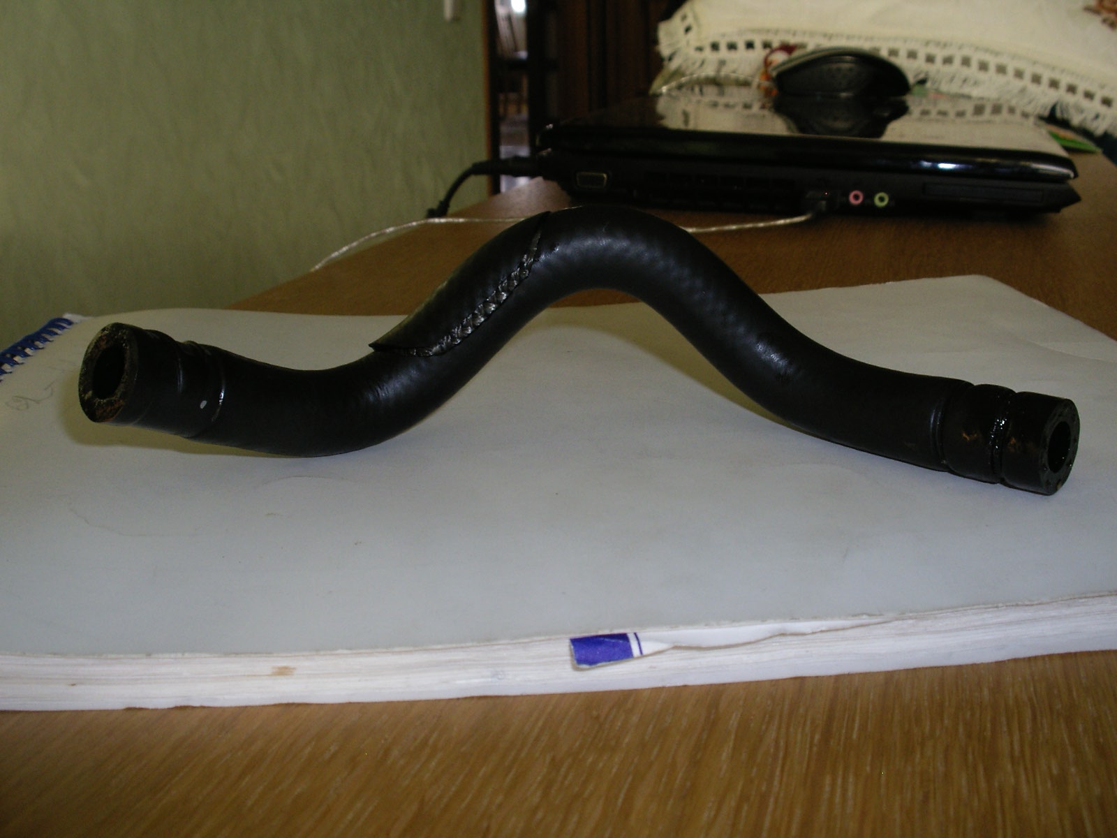 На морозе возиться мрачно, надо в тепло с ямой. Не стал мучить насос гидрача, вызвал эвакуатор до сарвиса(800р.). Такую трубку быстро не найти, был куплен шланг высокого давления VRT 10X7,5 1,47 ГОСТ10362-76 11X20 (списал всё на нём написанное), по характеристикам он такой же, только лучше сохраняет пластичность на морозе, стоил какие-то копейки.
