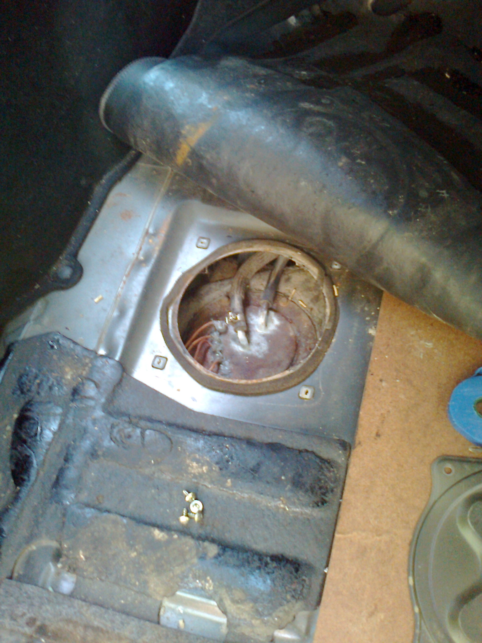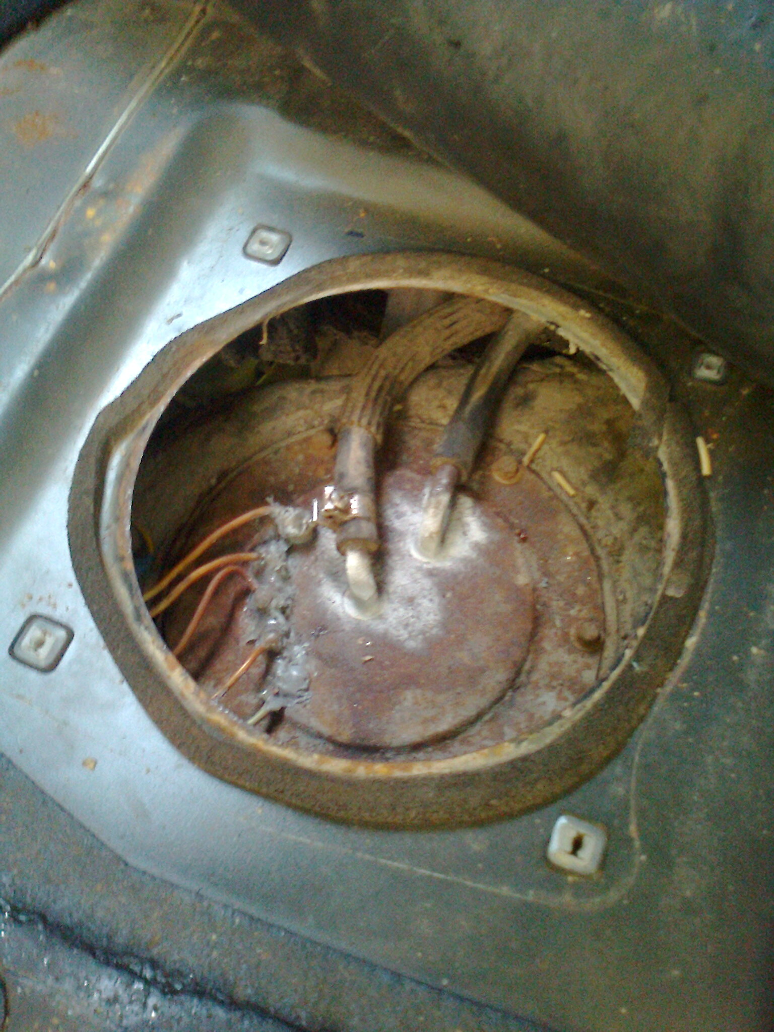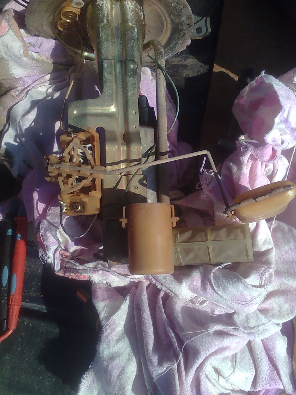 Купил в Карбонусе насос в сборе не знаю от чего ($20), но крышка люка бензобака один в один. На моём все провода отгнили, реостат протёрся и лампочка не работала. На этом насос в два раза больше, с какими-то "вакуумниками", реостат другой... Но болгарку в руки и в бак себе это безобразие - работает!